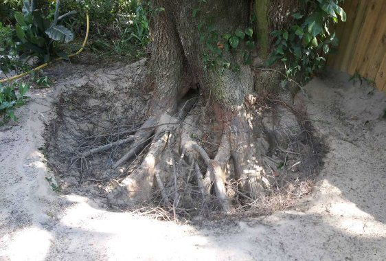 If your tree in Lakeland has been planted too deep or surrounded by years of piled mulch, the root flare may be completely buried under soil and organic debris. This creates a wet, oxygen-starved environment around the trunk that encourages decay, fungal growth, and girdling roots. The Tree Lady Company removes the excess material by hand or with specialized air tools to expose the natural widening at the base of the trunk where roots meet the soil.